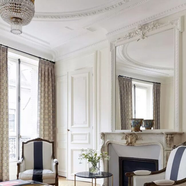 Parisian pied-Ã -terre designs capture hearts with their unparalleled elegance, especially when classic crown molding takes center stage.