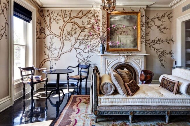 Boho styling meets historical charm through this elegant design approach, creating a balanced aesthetic that feels both modern and timeless.