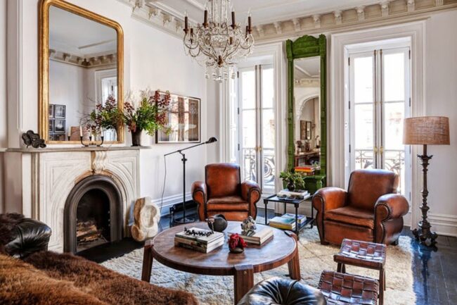 Vintage modern design brings magic to living spaces, where antique treasures like a 19th-century wheel barometer dance alongside contemporary industrial chandeliers.