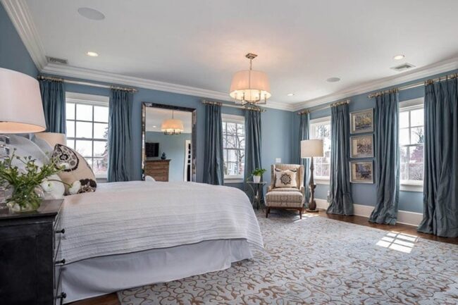 Restful blue tones promise a serene retreat from the outside world.