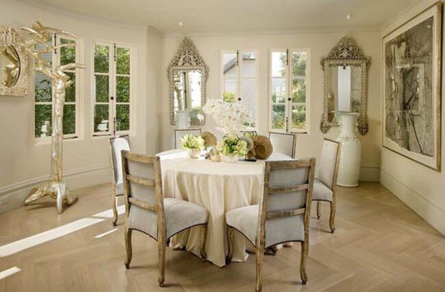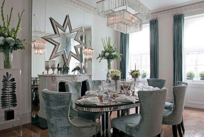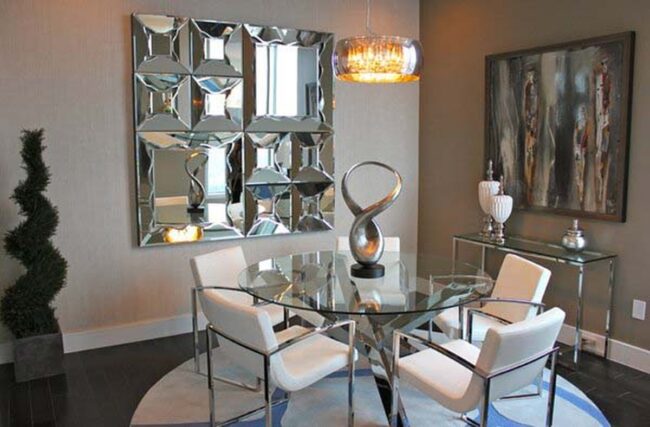 Silver-Edged Mirrors Expand Dining Dimensions