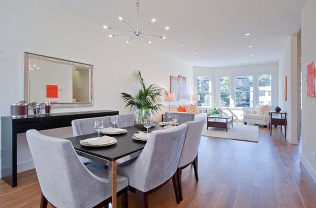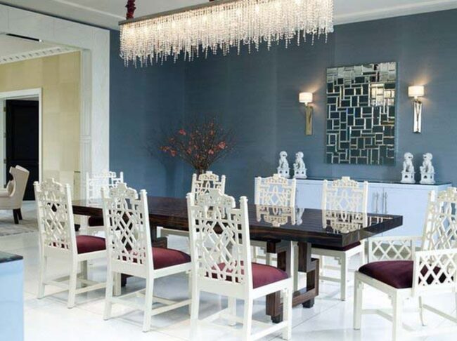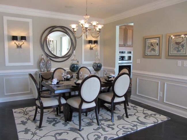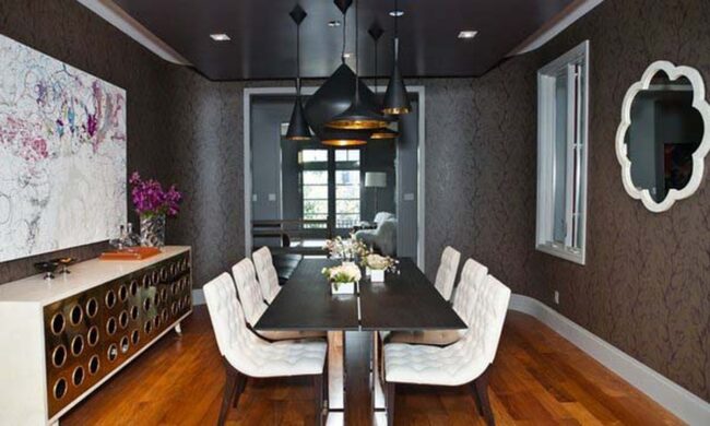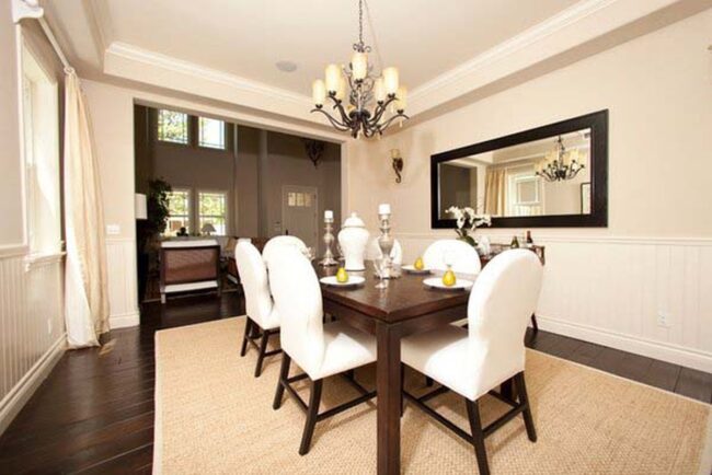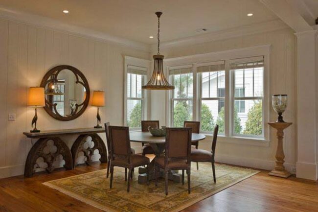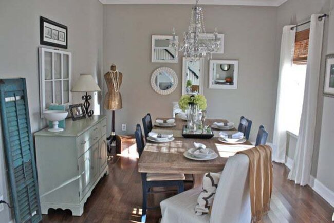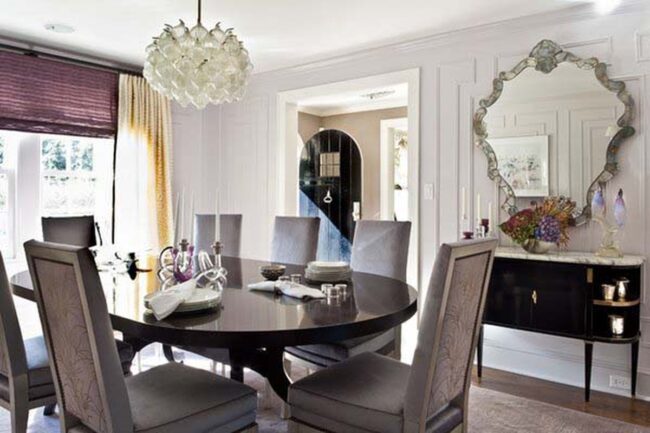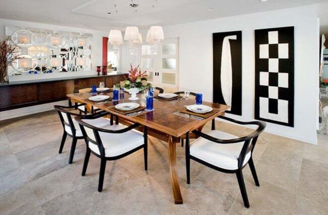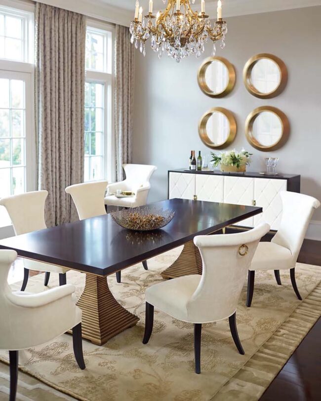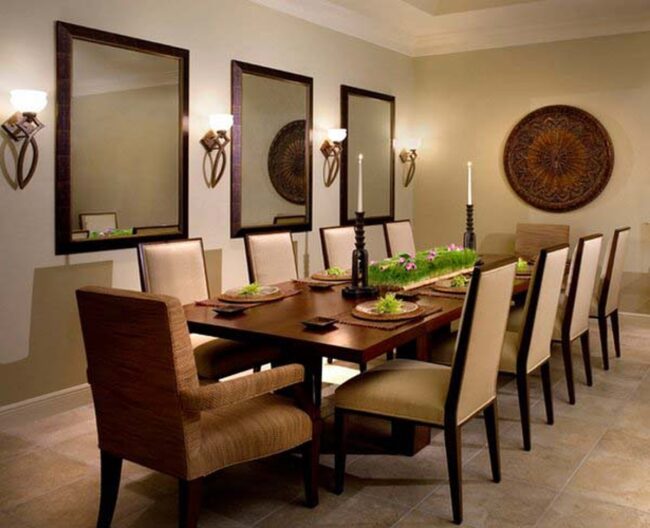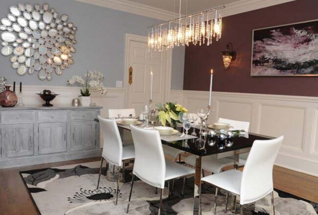 Careful placement allows these decorative elements to bounce light across interior spaces, making smaller dining areas feel more open and inviting.
