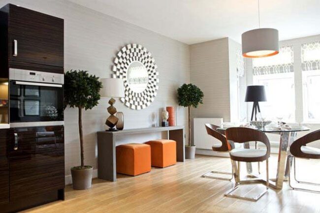 Light-catching reflective surfaces instantly make smaller rooms feel more spacious and elegant.