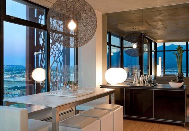 Silver Reflections Amplify Dining Space