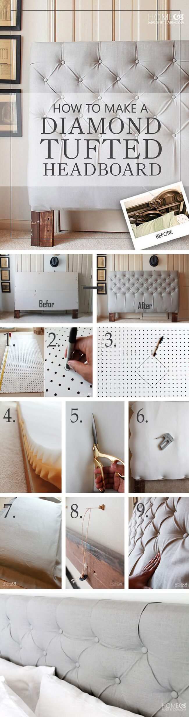 Diamond tufts elevate bedroom decor with an elegant, high-end look that feels surprisingly achievable for DIY enthusiasts.
