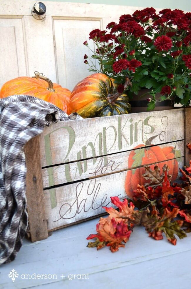 Rustic hand-painted pumpkin crates capture fall's magic with artisan charm, turning ordinary spaces into seasonal displays.
