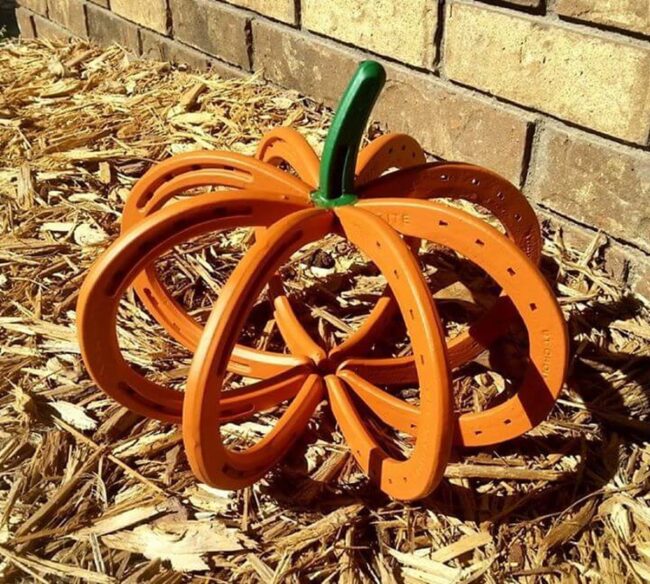 Metal horseshoes become an eye-catching autumn accent that adds rustic charm to your outdoor space.