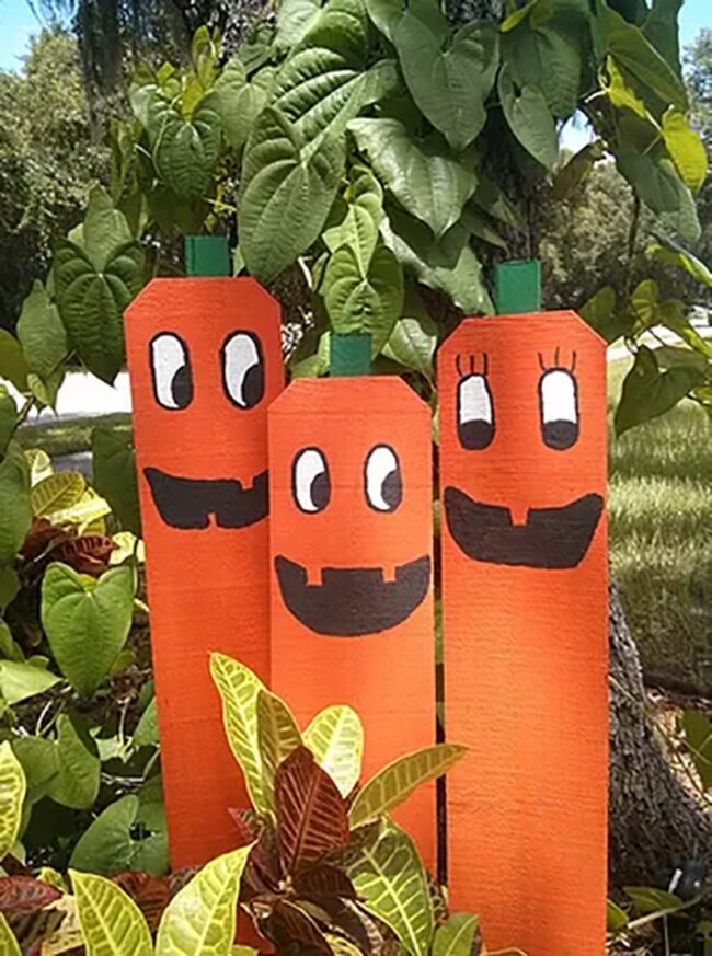 Natural textures and rich fall colors make these pumpkin cutouts stand out as delightful yard accents.