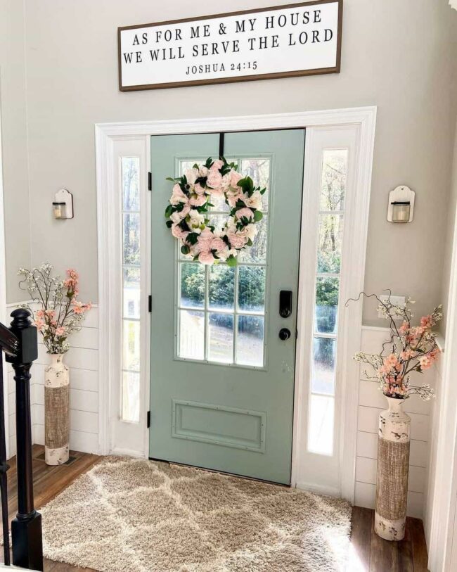 Subtle design choices work together to craft an entrance that feels both fresh and intimate.