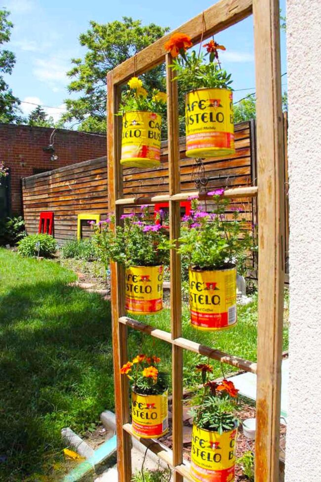 Coffee cans become stunning vertical garden planters that spark joy and creativity in any outdoor space.