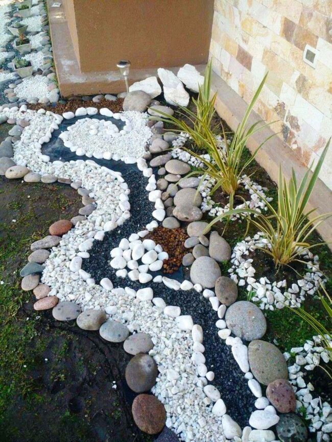 Artists and gardeners carefully select smooth rocks in complementary colors to create symmetrical designs that reflect nature's inherent beauty.
