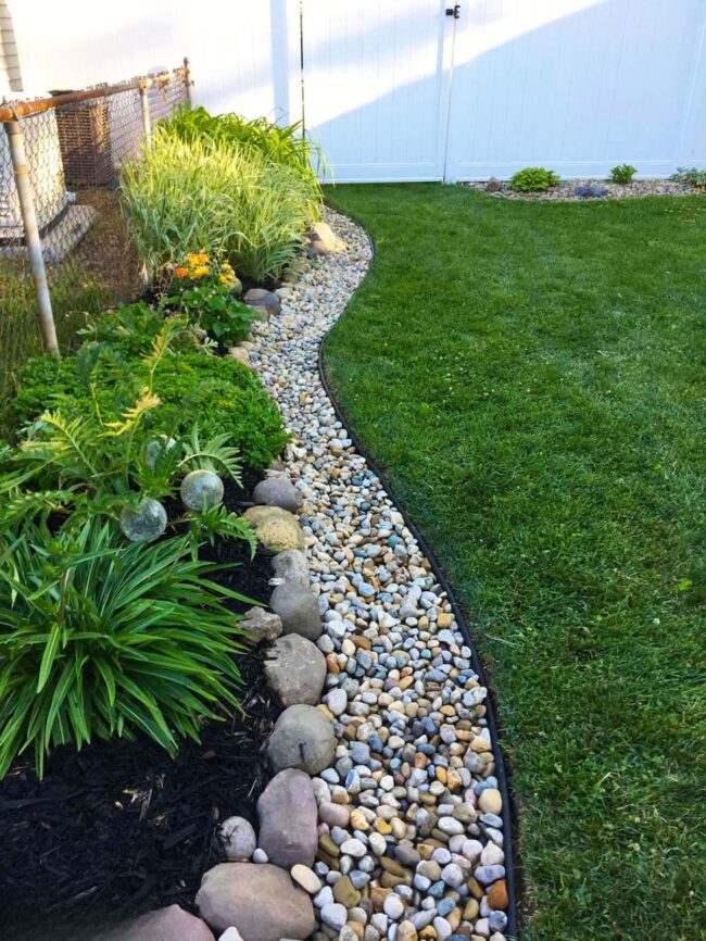 Decorative white pebbles soften pathway edges, introducing elegant texture and natural drainage capabilities to landscape designs.