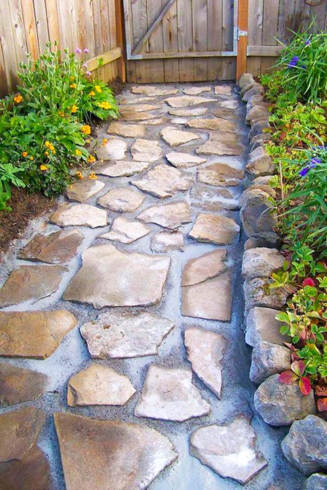 Secret garden pathways invite wanderers into nature's hidden sanctuary, where carefully placed river rocks and smooth stones create a mesmerizing trail through verdant landscapes.