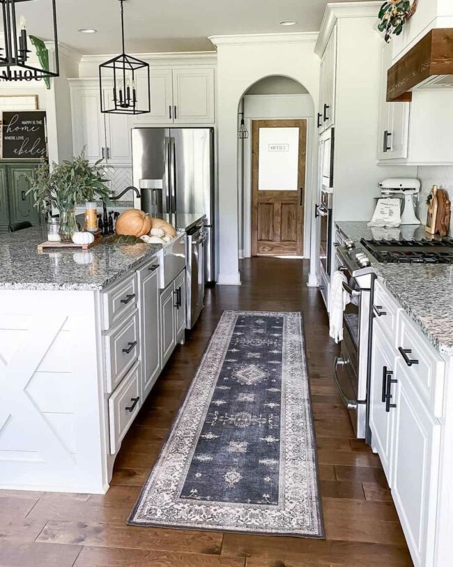 Textural elements like the runner inject personality into the kitchen's foundation.