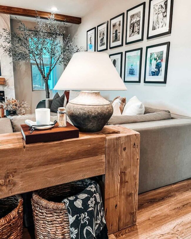 Rustic elements mix with contemporary touches, producing a warm aesthetic.