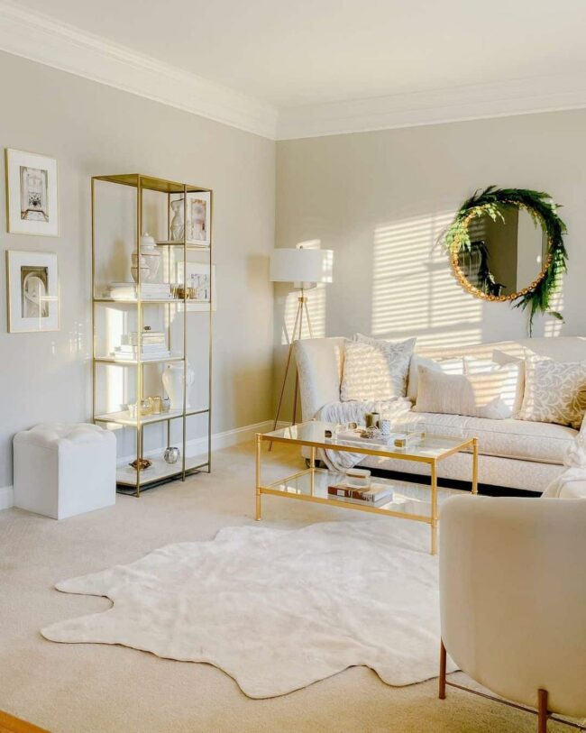 Metallic accents catch light beautifully, adding dimension and visual interest to the living area.