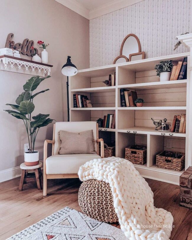 Book lovers will appreciate the intentional arrangement that celebrates reading and relaxation.