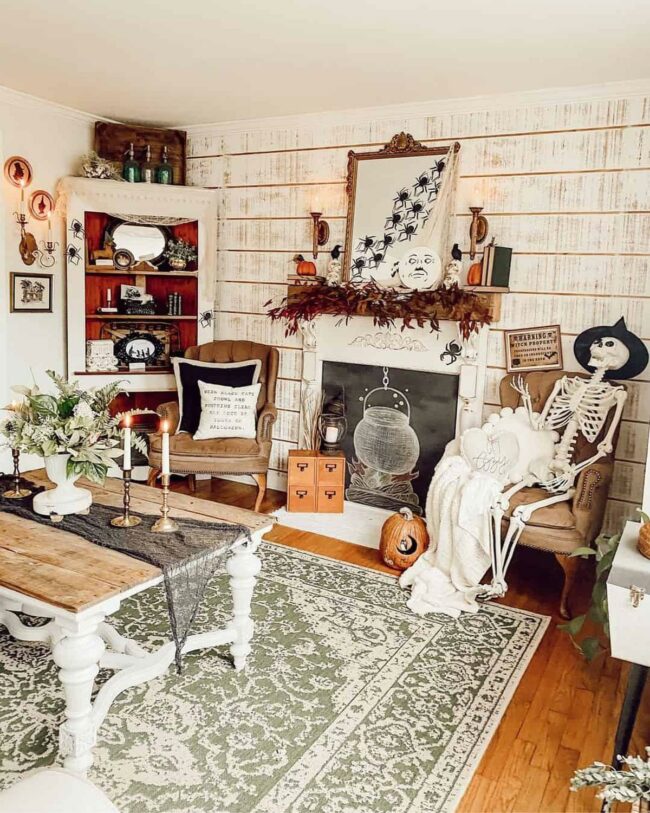 Small decorative touches bring seasonal warmth to the room's design.