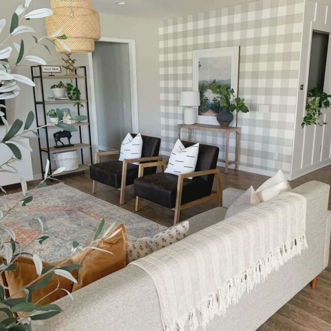 Gray buffalo check accents dramatically elevate a living space with contemporary charm.