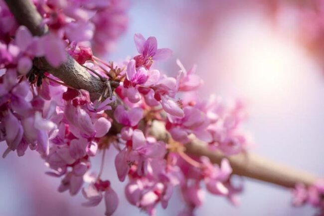 Magnificent Eastern redbud trees burst with delicate pink blossoms that create a breathtaking landscape spectacle each spring.