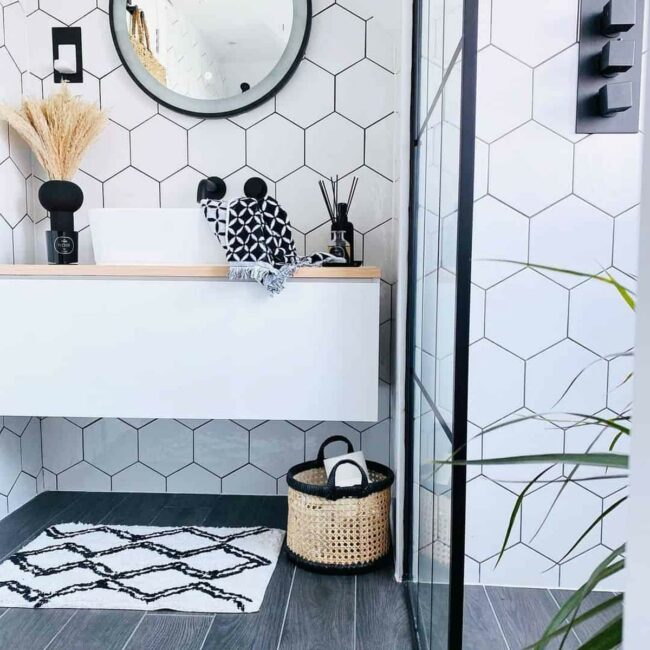 White hexagon wall tiles spark instant visual drama in bathrooms, turning ordinary spaces into design statements.