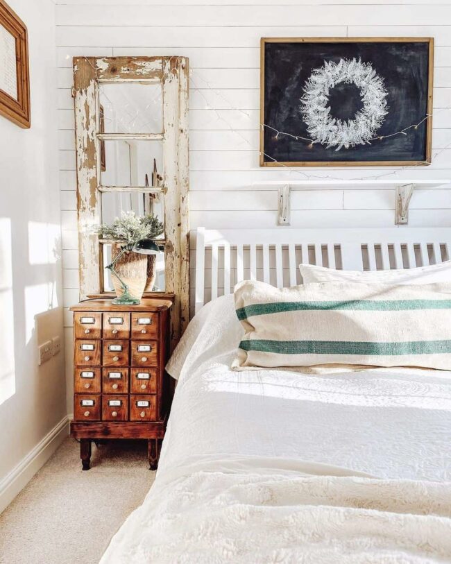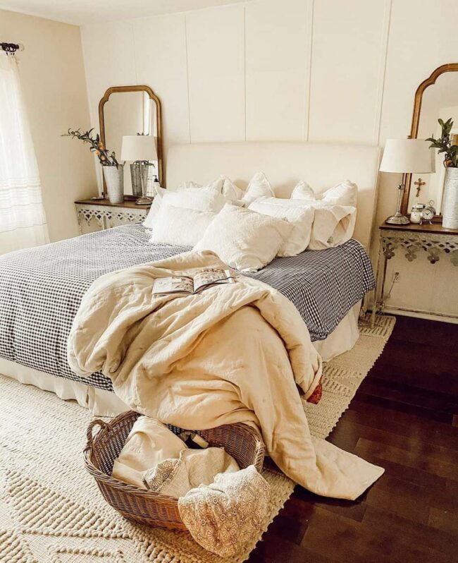 Rustic mirrors behind nightstands create magical bedroom transformations that instantly elevate your space's aesthetic.