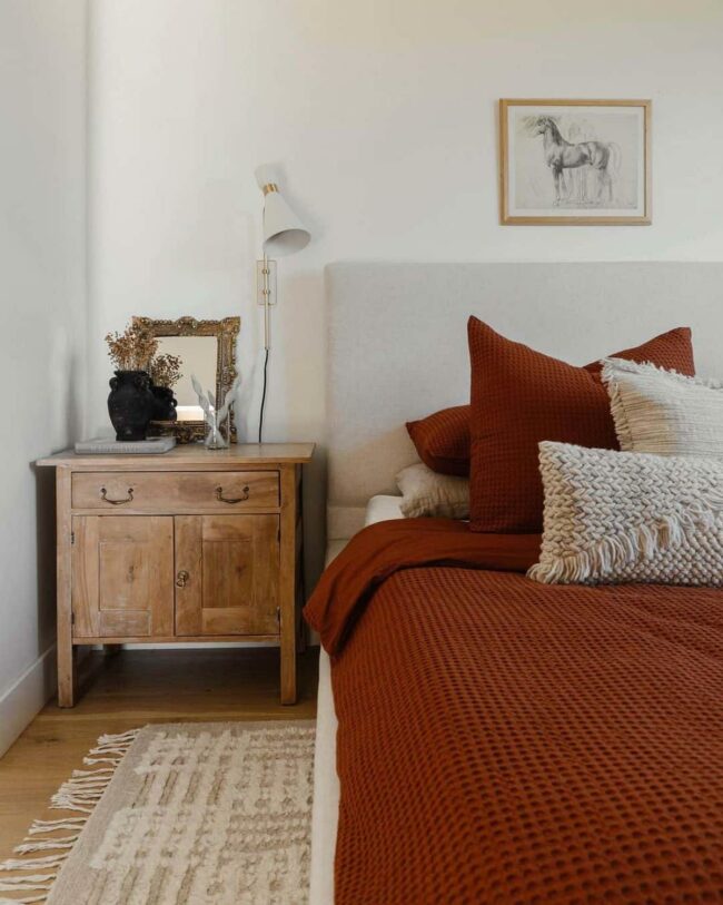 Natural materials whisper understated luxury, transforming an ordinary bedroom into an intimate sanctuary.