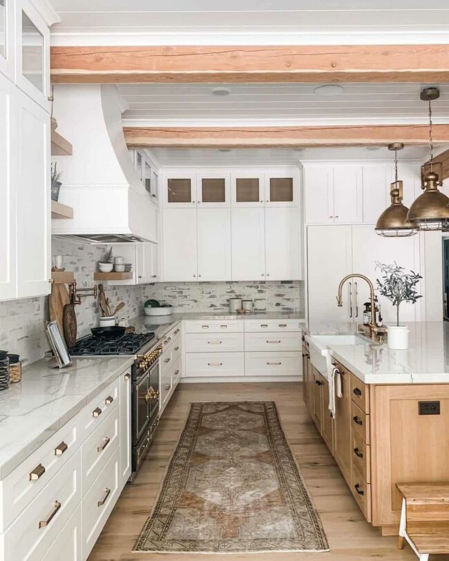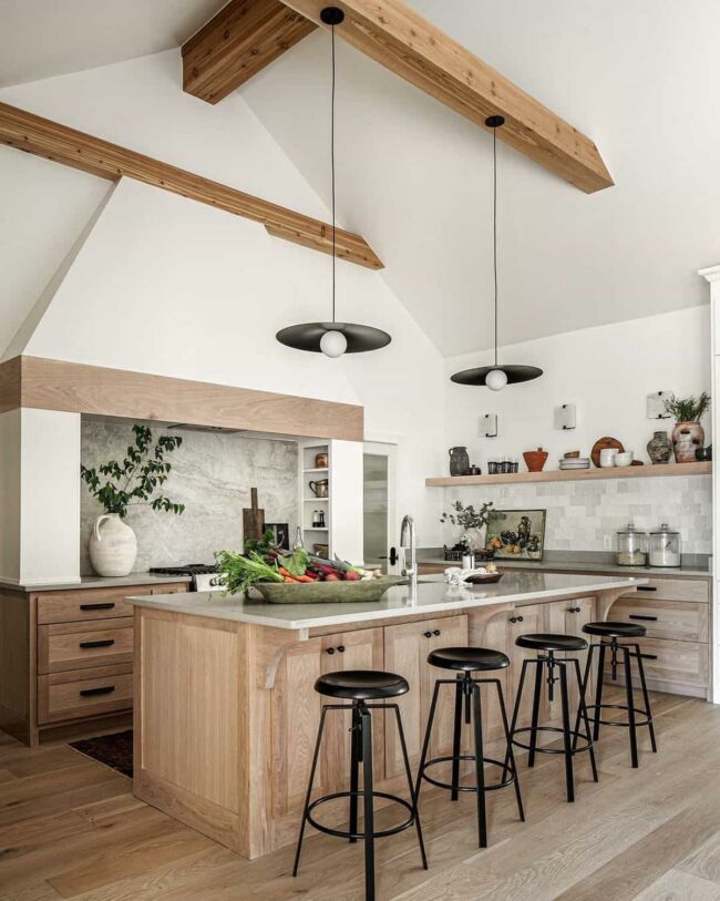 Natural wood elements infuse warmth into the space, making the kitchen feel welcoming and inviting.
