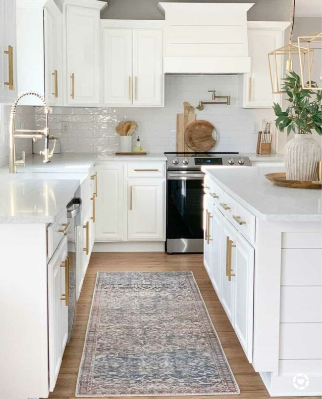 Gold Accents White Shiplap Kitchen