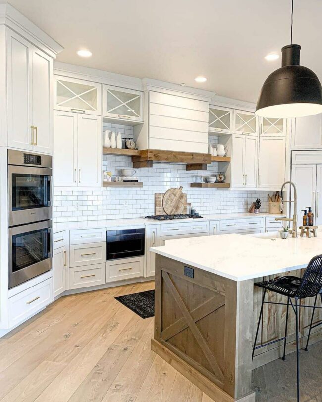Kitchen islands sporting white shiplap capture hearts with their irresistible farmhouse-modern fusion.