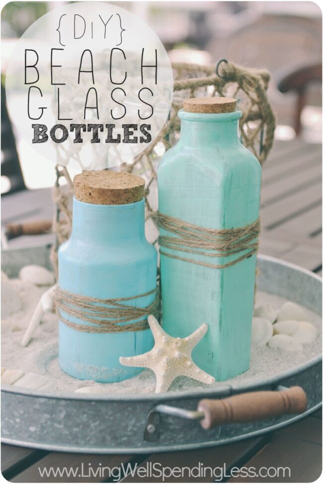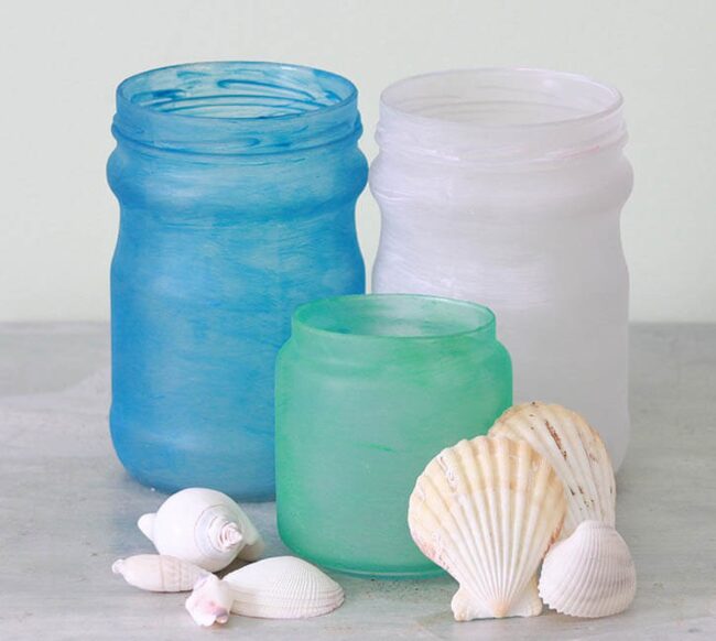 Coastal charm comes alive with frosted beach glass jars that capture ocean vibes perfectly.