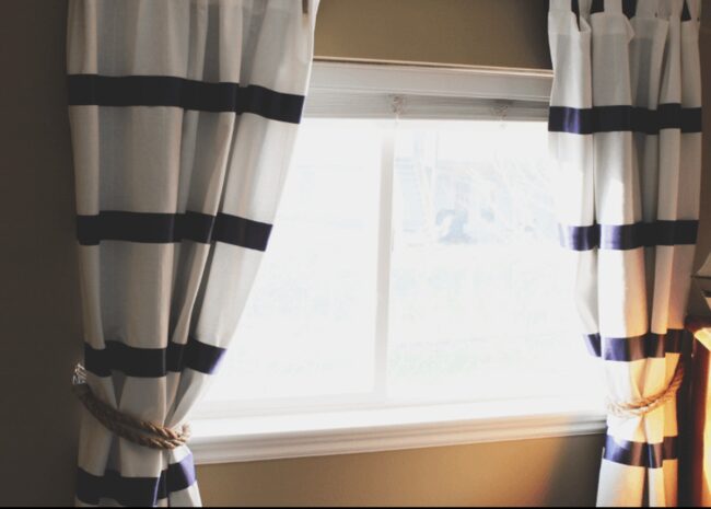 Nautical charm bursts through windows with bold blue and white striped curtains that instantly elevate any room's design.