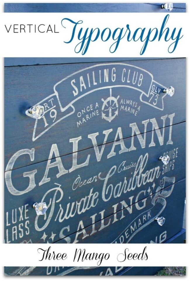 Weathered wood pieces tell stories of oceanic adventures through hand-painted words and images.