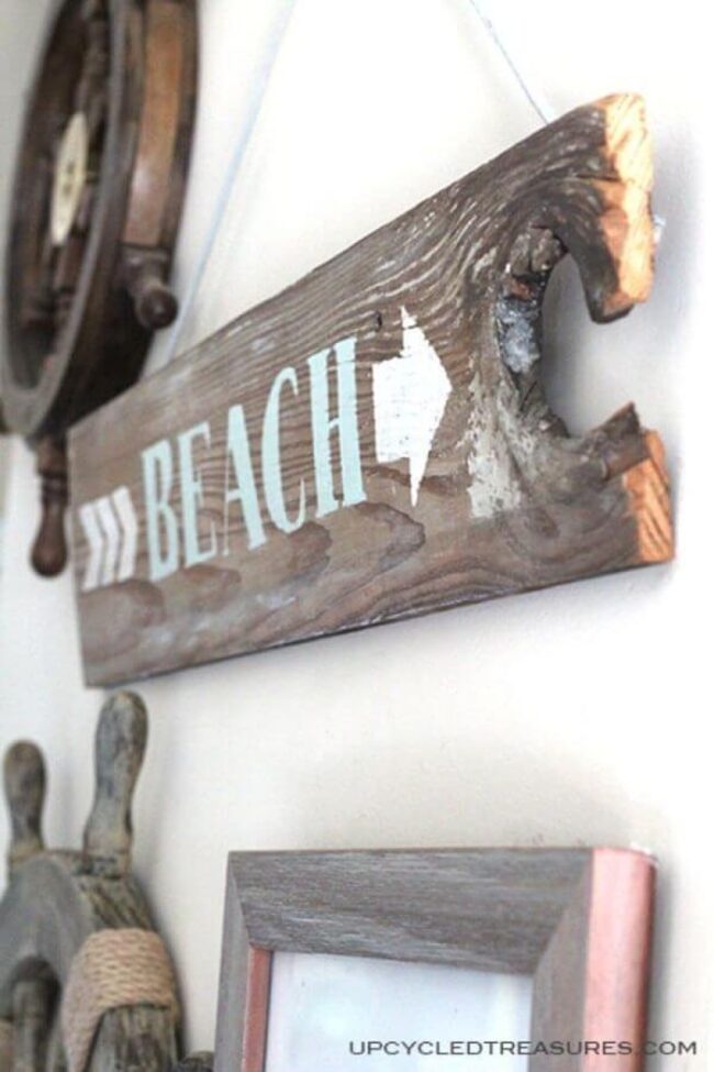 Coastal vibes come alive with driftwood beach signs that capture seaside relaxation.