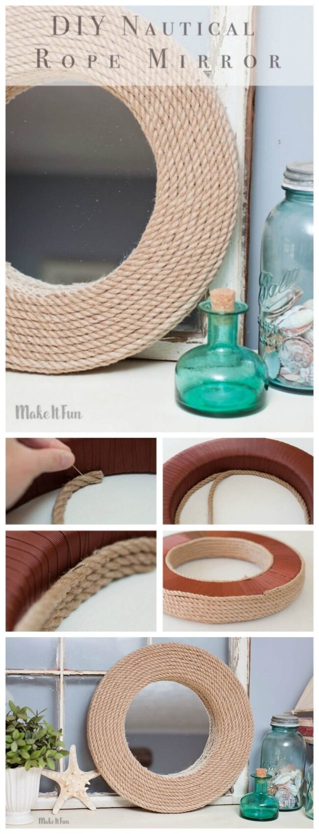Rope-wrapped mirrors work beautifully in beach houses, urban lofts, and eclectic home settings.