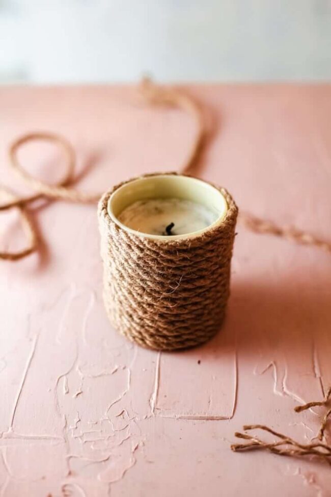 Glass containers wrapped in nautical rope create an instant warmth that draws people closer to their gentle glow.