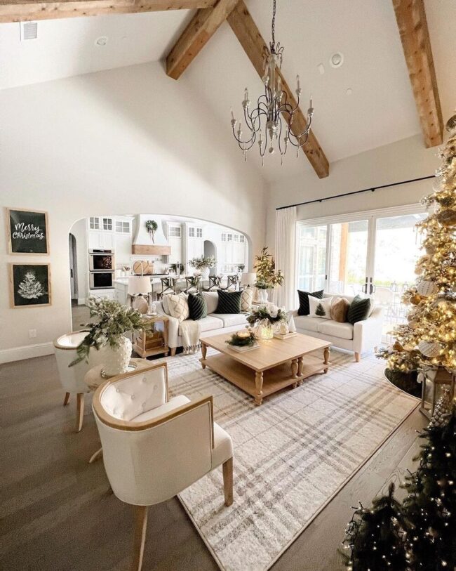 Relaxed holiday living rooms radiate serene elegance through carefully curated design elements that invite calm celebration.