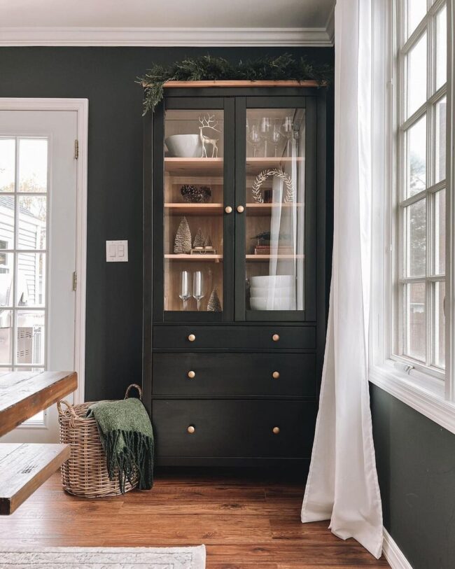 Dark tones create visual drama without overwhelming the existing decor.