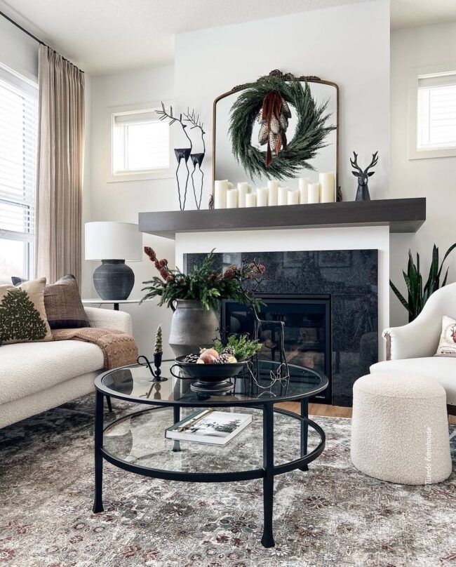 Sophisticated holiday mantel decor elevates living spaces with refined charm, blending neutral tones and classic elements to create an inviting seasonal sanctuary.