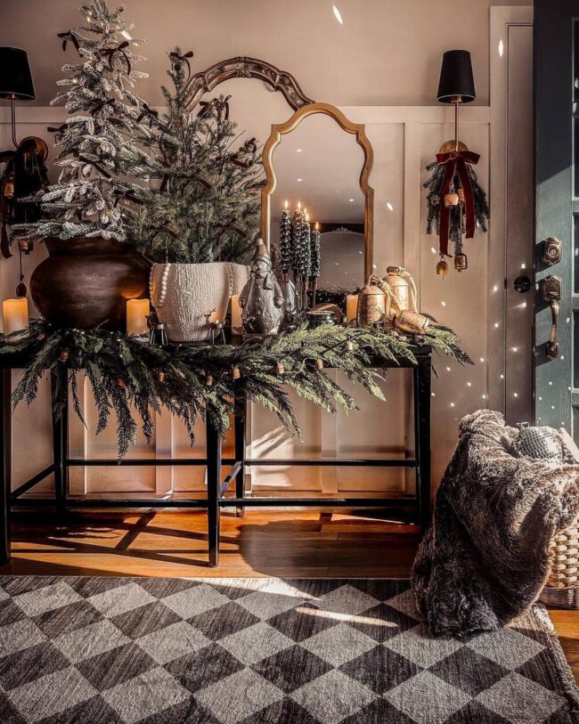 Crafting a magical Christmas display in compact spaces starts with a statement console table that becomes your festive focal point.