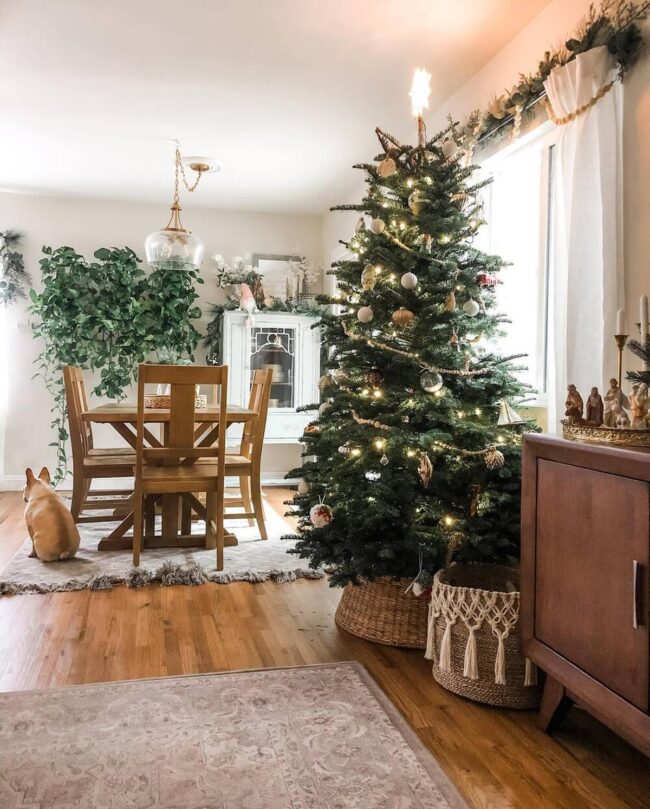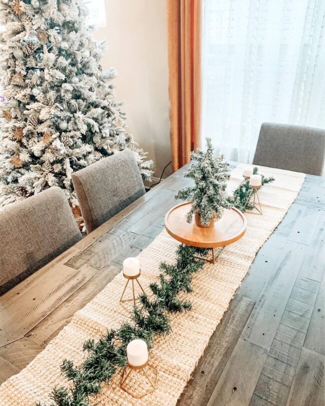 Natural materials like burlap bring warmth and organic charm to traditional holiday settings.