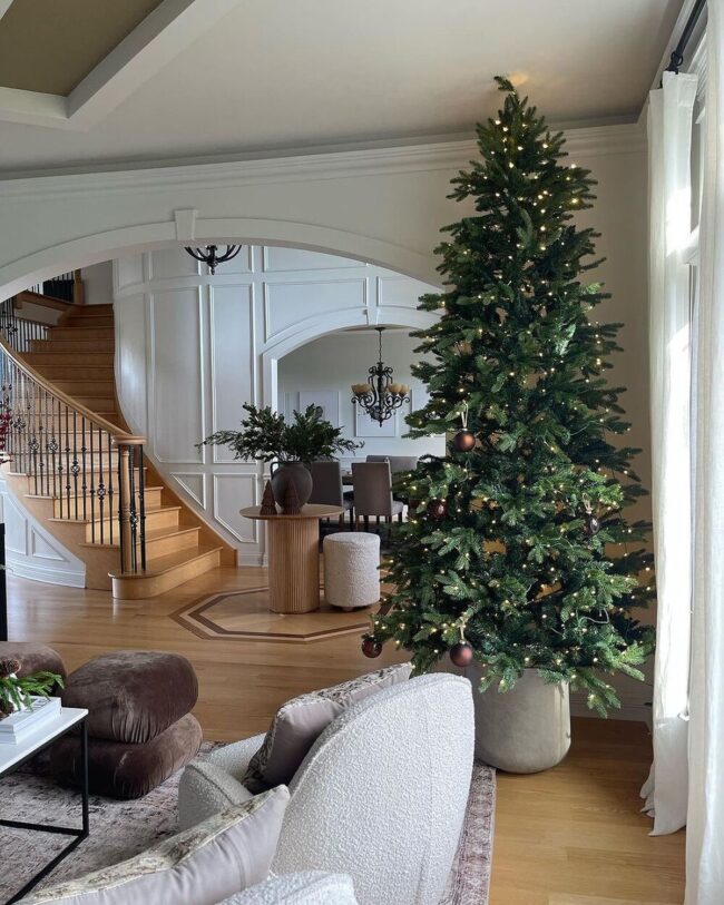 Majestic Christmas trees become stunning focal points during holiday celebrations, commanding attention with their elegant design and carefully curated ornaments.