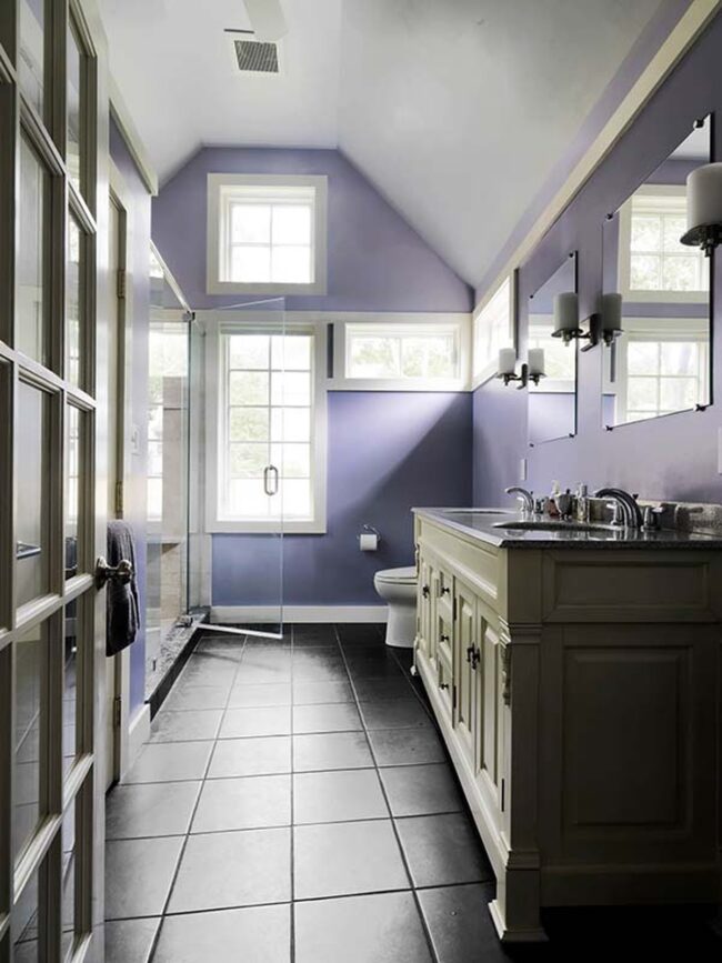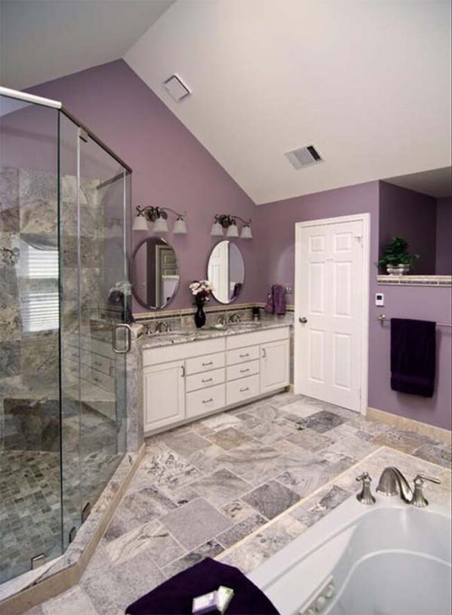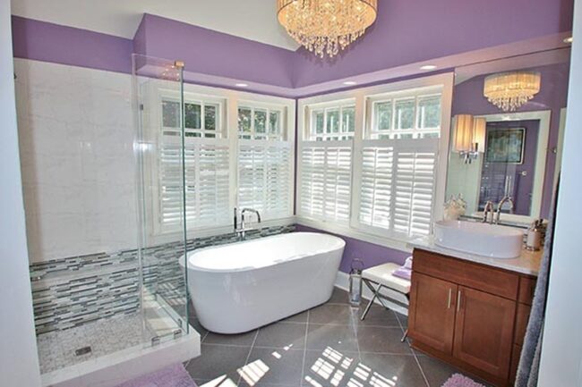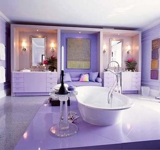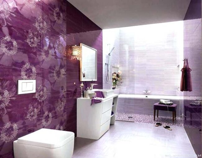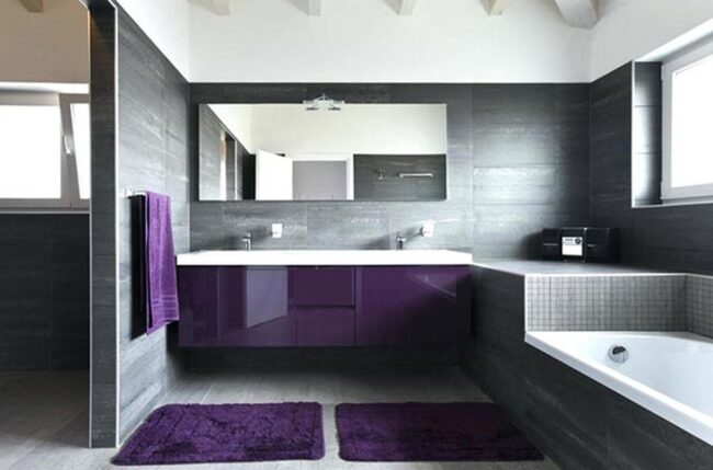 Purple bathrooms radiate elegance and calm, offering a sanctuary that blends royal sophistication with soothing comfort.