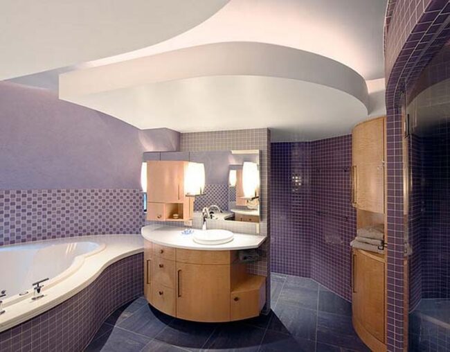 Purple bathrooms radiate luxurious comfort with sophisticated design elements that create a stunning sanctuary for personal relaxation.