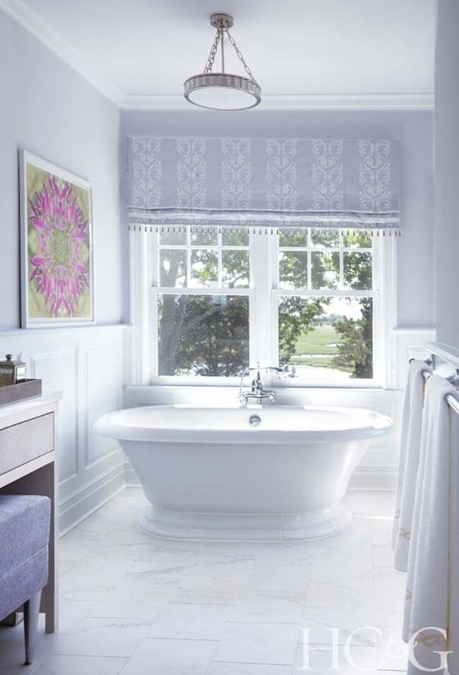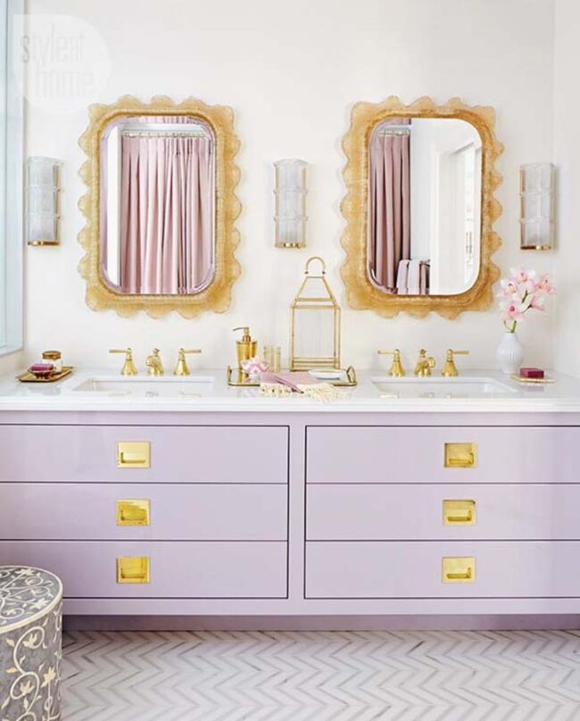 Lavender-tinted bathrooms offer a serene sanctuary that expands visual dimensions and promotes relaxation.