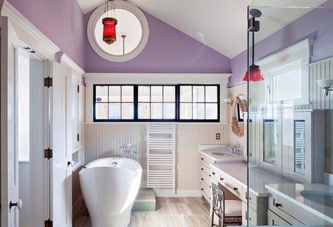 Muted purple tones represent an excellent choice for those seeking a refreshing and calming bathroom environment.