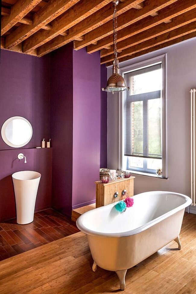 Carefully chosen purple accessories like towels, shower curtains, or artwork can amplify the room's visual drama without overwhelming the space.