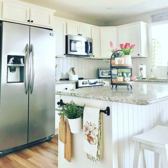 White shiplap walls deliver instant kitchen magic, blending rustic allure with modern design.