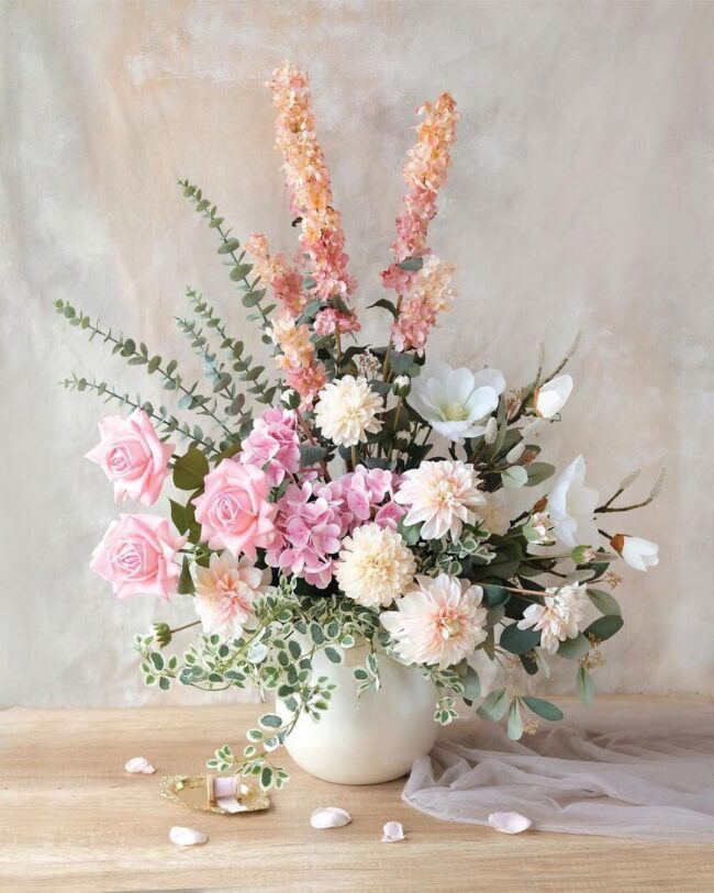 Faux flower arrangements bring timeless elegance to home decor, showcasing intricate craftsmanship that rivals natural blooms.