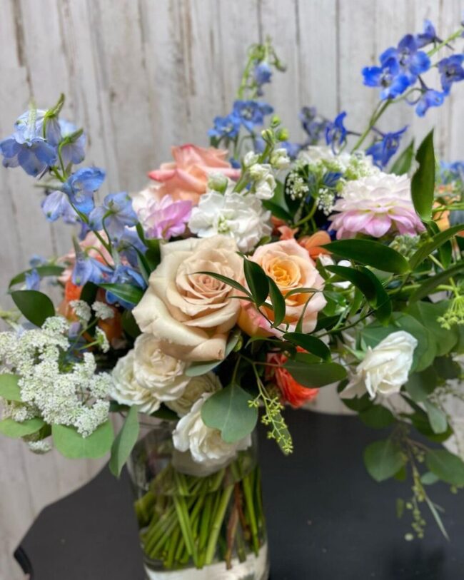 Wildflowers, garden roses, and seasonal blooms work perfectly together, blending seamlessly to capture springtime's essence.